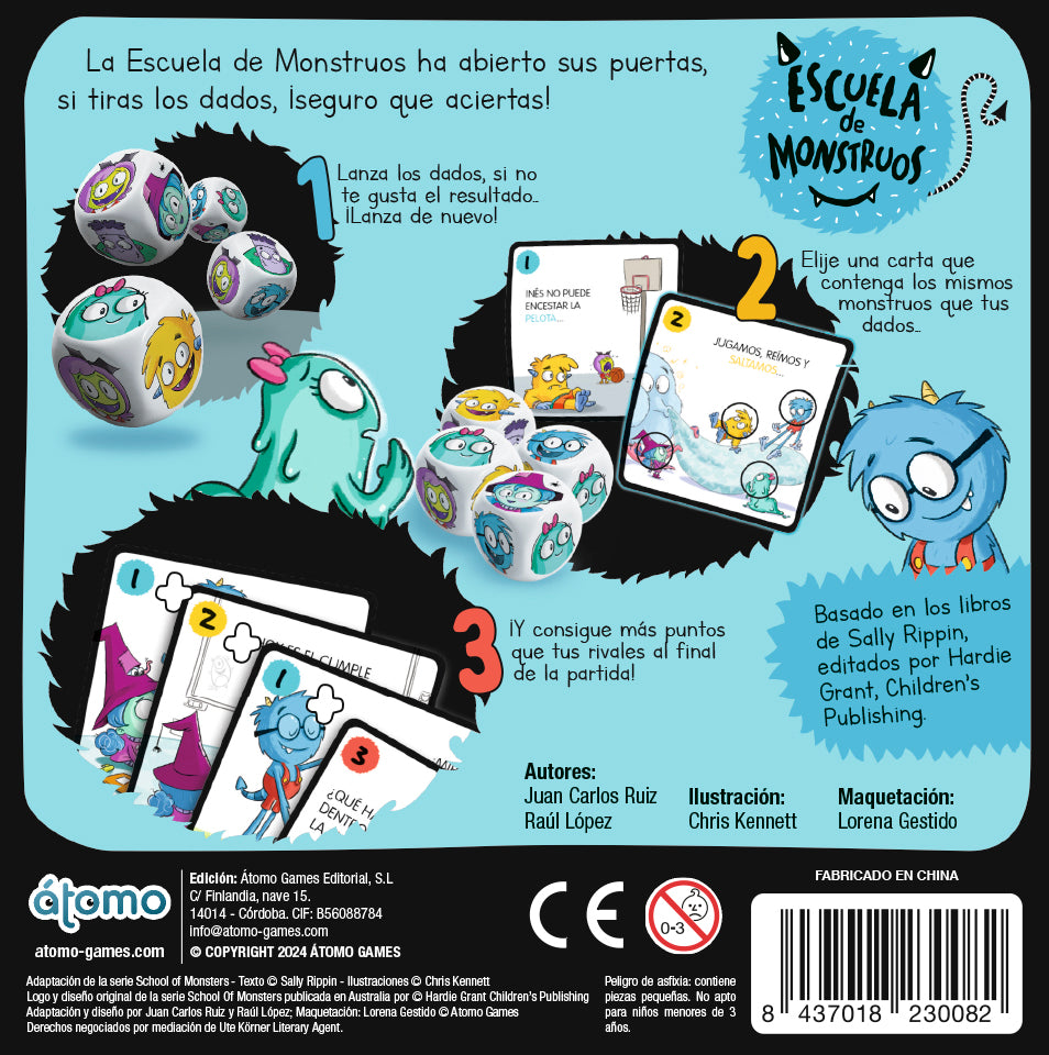 - Incluye 40 cartas de monstruos y 4 dados personalizados con los personajes de los libros infantiles