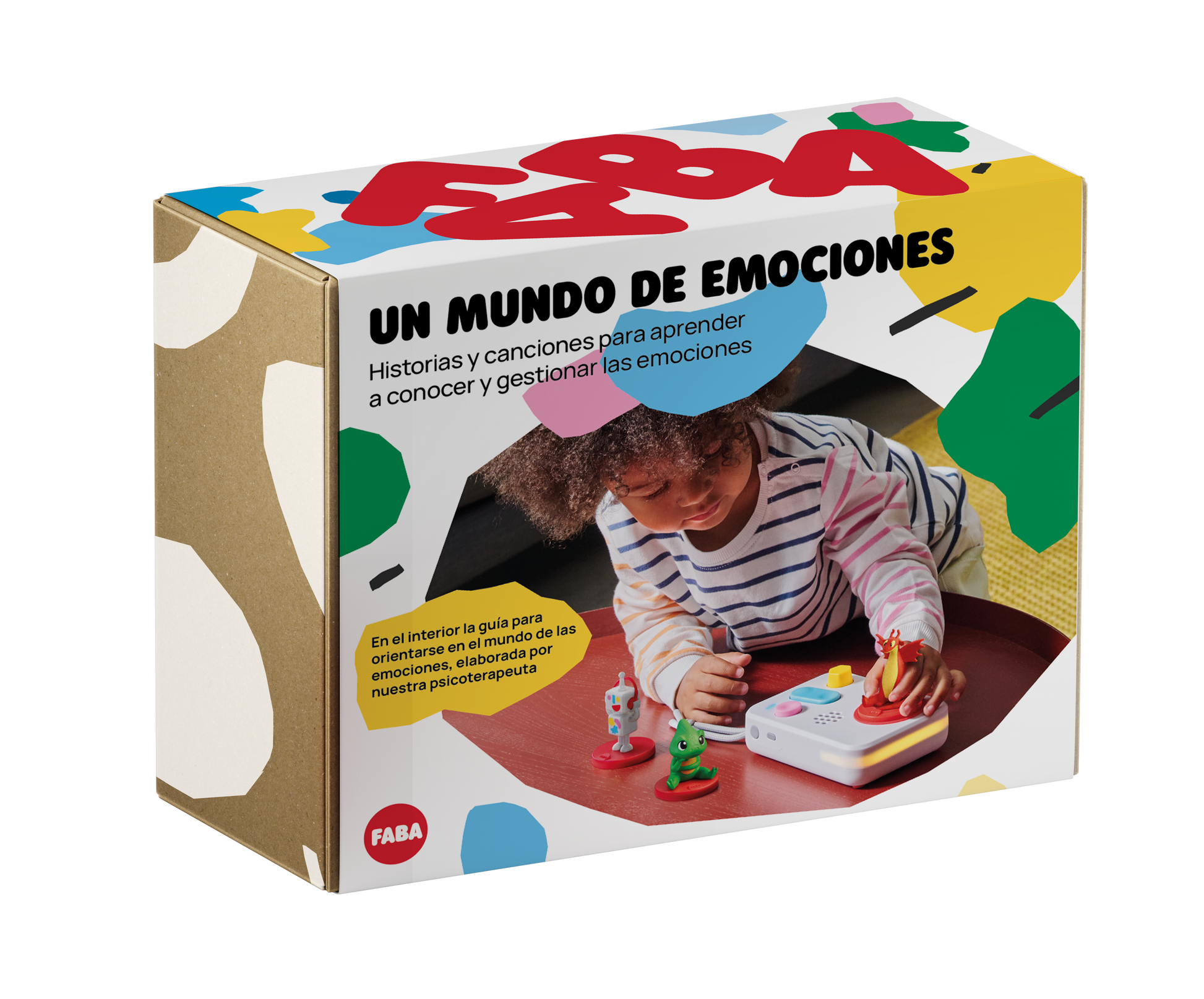 Un kit pensado para ayudar a niños y niñas de 3 a 5 años a reconocer, expresar y gestionar las emociones a través del juego y la escucha. El kit incluye 3 Personajes sonoros FABA, con historias y músicas que guiarán a los más pequeños en la exploración de emociones como la alegría, la tristeza, la rabia y el miedo.