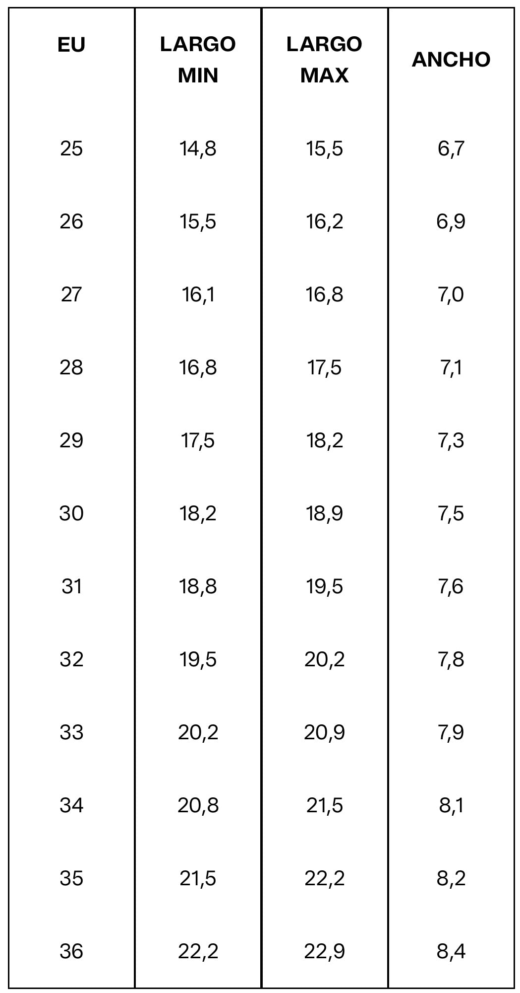 ANCHO DE PLANTILLA – Ancho máximo que no debería superarse para esa talla.