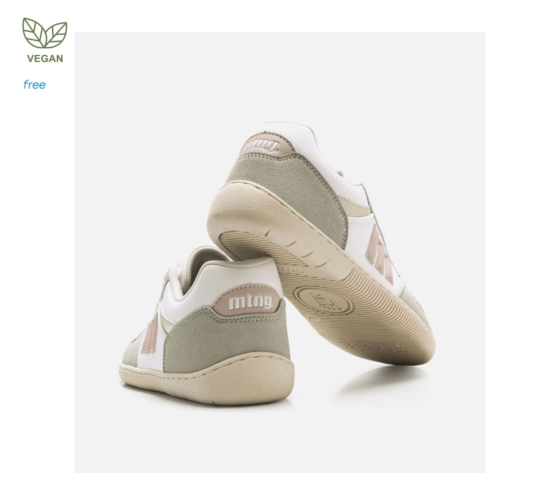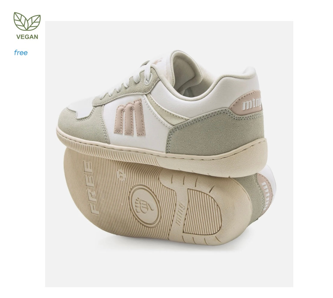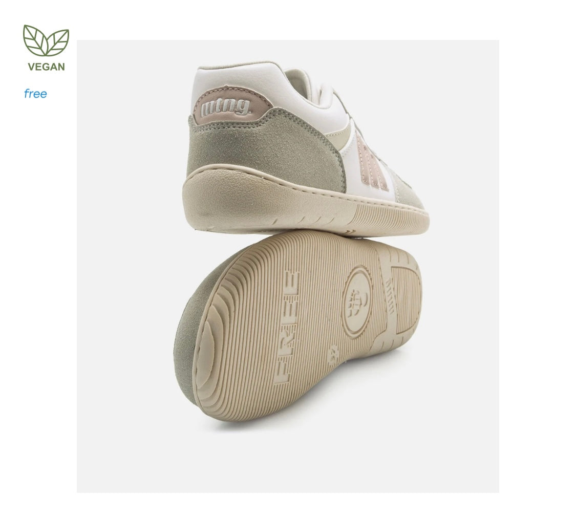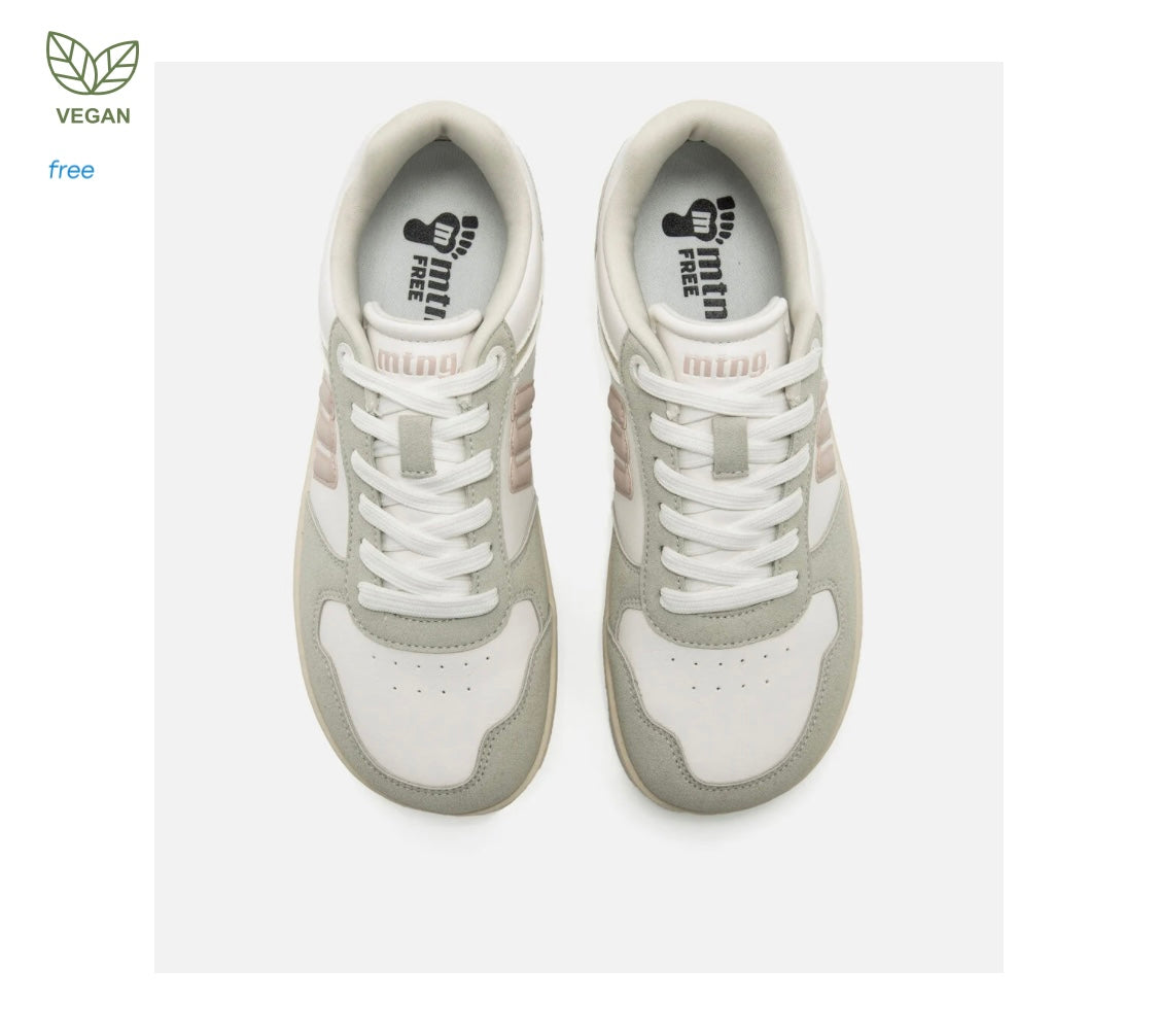Zapatillas de color blanco para mujer Mustang modelo Free Aria de estilo casual con detalles en tonos gris y rosa claro, que aportan un toque fresco y actual. Su suela de color crema proporciona un contraste suave, ideal para looks informales. Diseñadas y desarrolladas especialmente en colaboración con el Dr. Juanjo López, traumatólogo deportivo, para respetar el desarrollo natural del pie. Se trata de un calzado minimalista que gracias a su puntera ancha, suela totalmente plana (cero drop) y flexibilidad, mejora la anatomía del pie y favorece una mejor posición del mismo. Se vende con una plantilla de transición para hacer el cambio de calzado convencional a minimalista de manera progresiva. Con certificado VEGANO sellado por INESCOP, el cual garantiza que la naturaleza química principal del material no se corresponde con fibras de origen animal.