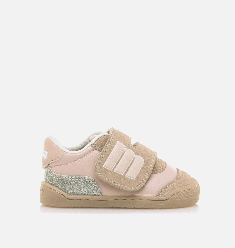 Zapatillas de color rosa para niña, modelo Free Baby de la marca Mustang. Combina paneles lisos con zonas tipo serraje suave y detalles de glitter en el talón, aportando textura y un sutil toque brillante. El doble cierre adhesivo con la “m” del logo facilita el calce. Diseñada y desarrollada especialmente en colaboración con el Dr. Juanjo López, traumatólogo deportivo e infantil, para respetar el desarrollo natural del pie de los niños. Gracias a su puntera ancha permite el libre movimiento de los dedos dentro del zapato. Su suela tiene 3 mm de grosor y con zero drop (totalmente plana) respeta el natural desarrollo del pie del pequeño y sus elementos flexibles y torsionables hace que el pie del niño no esté encorsetado por la estructura del zapato. Las plantillas extraíbles facilitan comprobar si la talla del calzado es la correcta para tu hijo. Además, su fácil apertura facilita que el niño pueda descalzarse y calzarse de forma autónoma. Acompaña los primeros pasos de tu bebé con Mustang. Con certificado VEGANO sellado por INESCOP, el cual garantiza que la naturaleza química principal del material no se corresponde con fibras de origen animal.