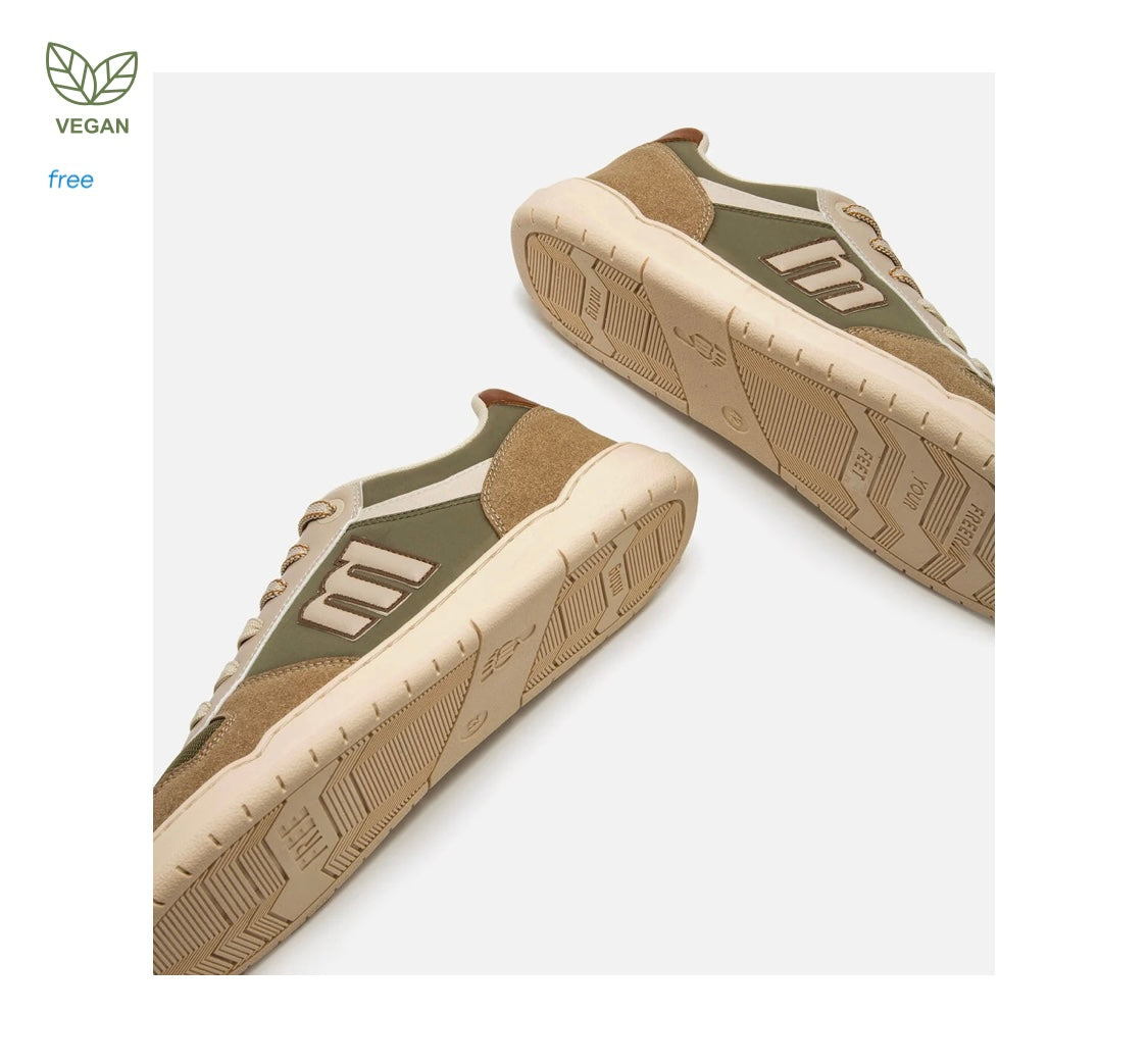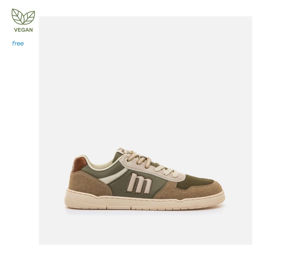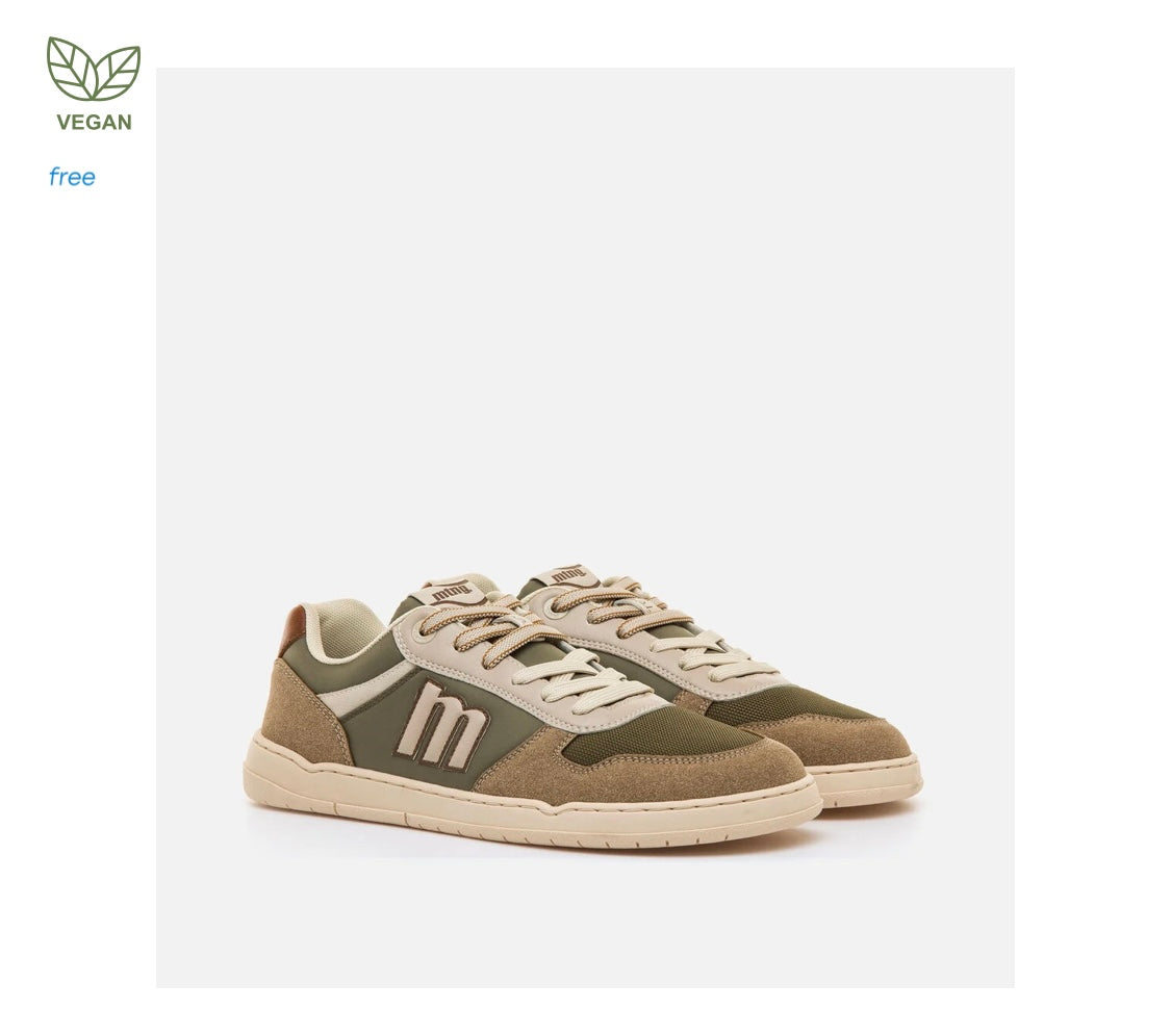 Zapatillas de color verde caqui para hombre, modelo Free Miami de la marca Mustang. Su combinación de texturas y tonos tierra con detalles beige y marrones aporta un estilo natural y dinámico. La estructura ligera y la suela clara completan un look cómodo y fácil de combinar. Diseñadas y desarrolladas especialmente en colaboración con el Dr. Juanjo López, traumatólogo deportivo, para respetar el desarrollo natural del pie. Se trata de un calzado minimalista que gracias a su puntera ancha, suela totalmente plana (cero drop) y flexibilidad, mejora la anatomía del pie y favorece una mejor posición del mismo. Se vende con una plantilla de transición para hacer el cambio de calzado convencional a minimalista de manera progresiva. Con certificado VEGANO sellado por INESCOP, el cual garantiza que la naturaleza química principal del material no se corresponde con fibras de origen animal.