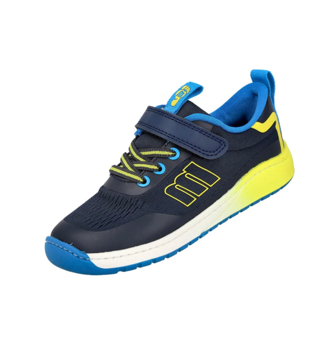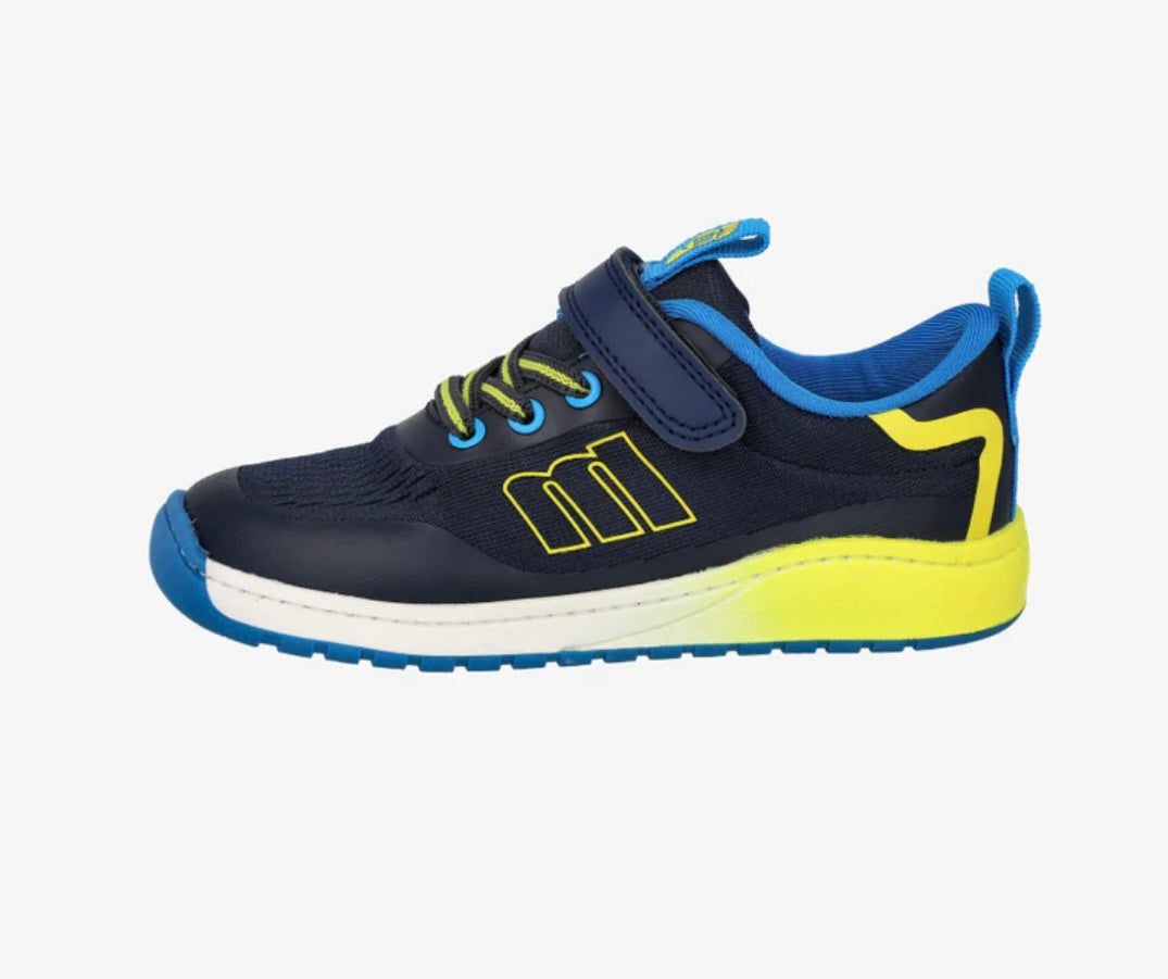 Zapatillas deportivas azul marino para niño de la marca Mustang, modelo Free. Su diseño mezcla tejido técnico con textura de malla y refuerzos en material liso, combinando tonos azul, amarillo y detalles en negro para un look activo y llamativo. Incorpora cordones elásticos y tira adherente para un ajuste cómodo. La suela bicolor con puntera reforzada asegura estabilidad y confort en cada movimiento. Diseñadas y desarrolladas especialmente en colaboración con el Dr. Juanjo López, traumatólogo deportivo, para respetar el desarrollo natural del pie. Se trata de un calzado minimalista que gracias a su puntera ancha, suela totalmente plana (cero drop) y flexibilidad, mejora la anatomía del pie y favorece una mejor posición del mismo. Se vende con una plantilla de transición para hacer el cambio de calzado convencional a minimalista de manera progresiva. Con certificado VEGANO sellado por INESCOP, el cual garantiza que la naturaleza química principal del material no se corresponde con fibras de origen animal.