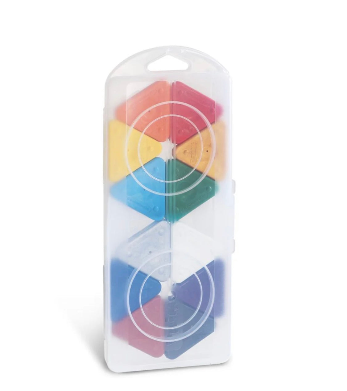 Ceras triangulares con 10 colores primarios y 2 colores mágicos para los más pequeños: PLATA Y ORO. Su forma facilita el agarre ergonómico a los más peques.